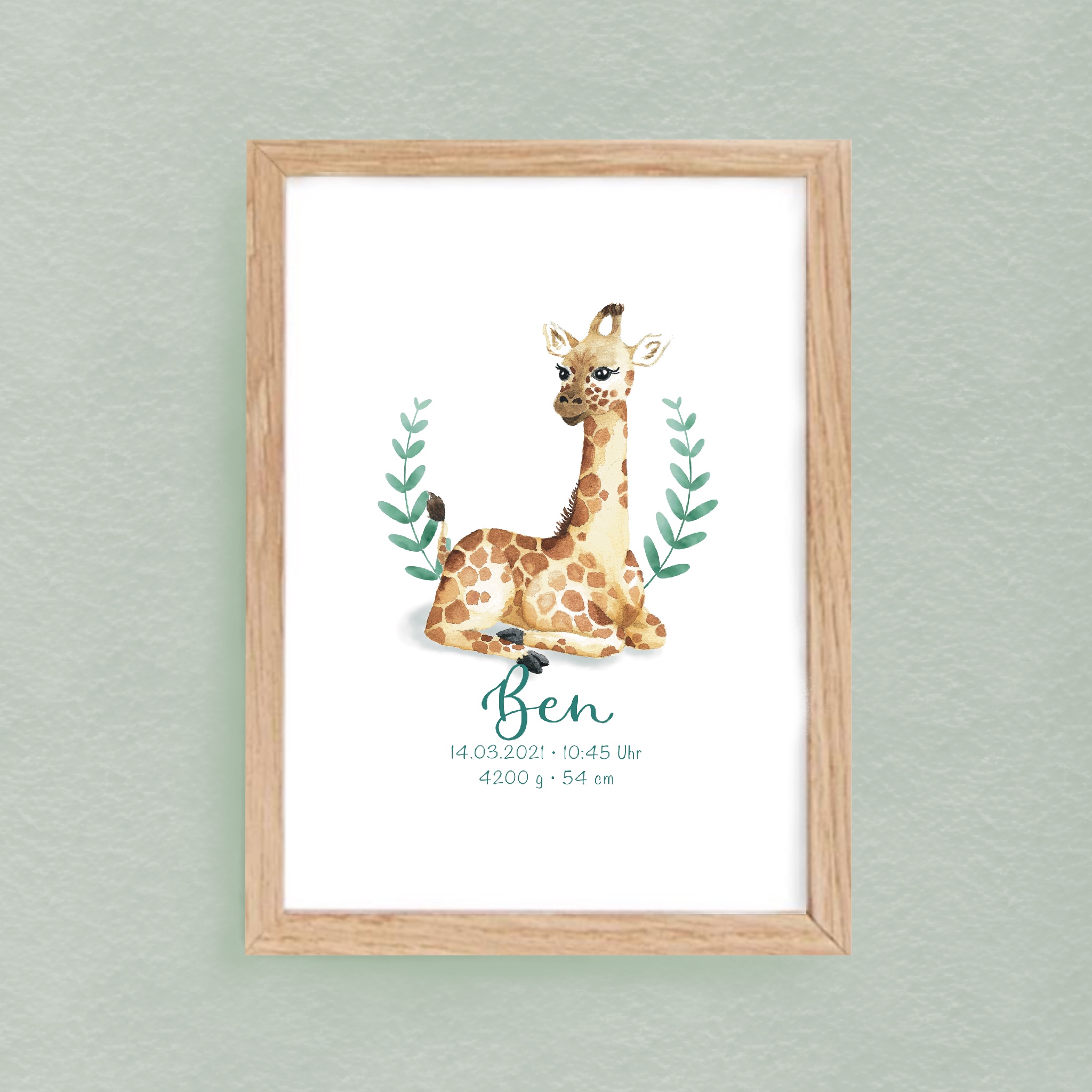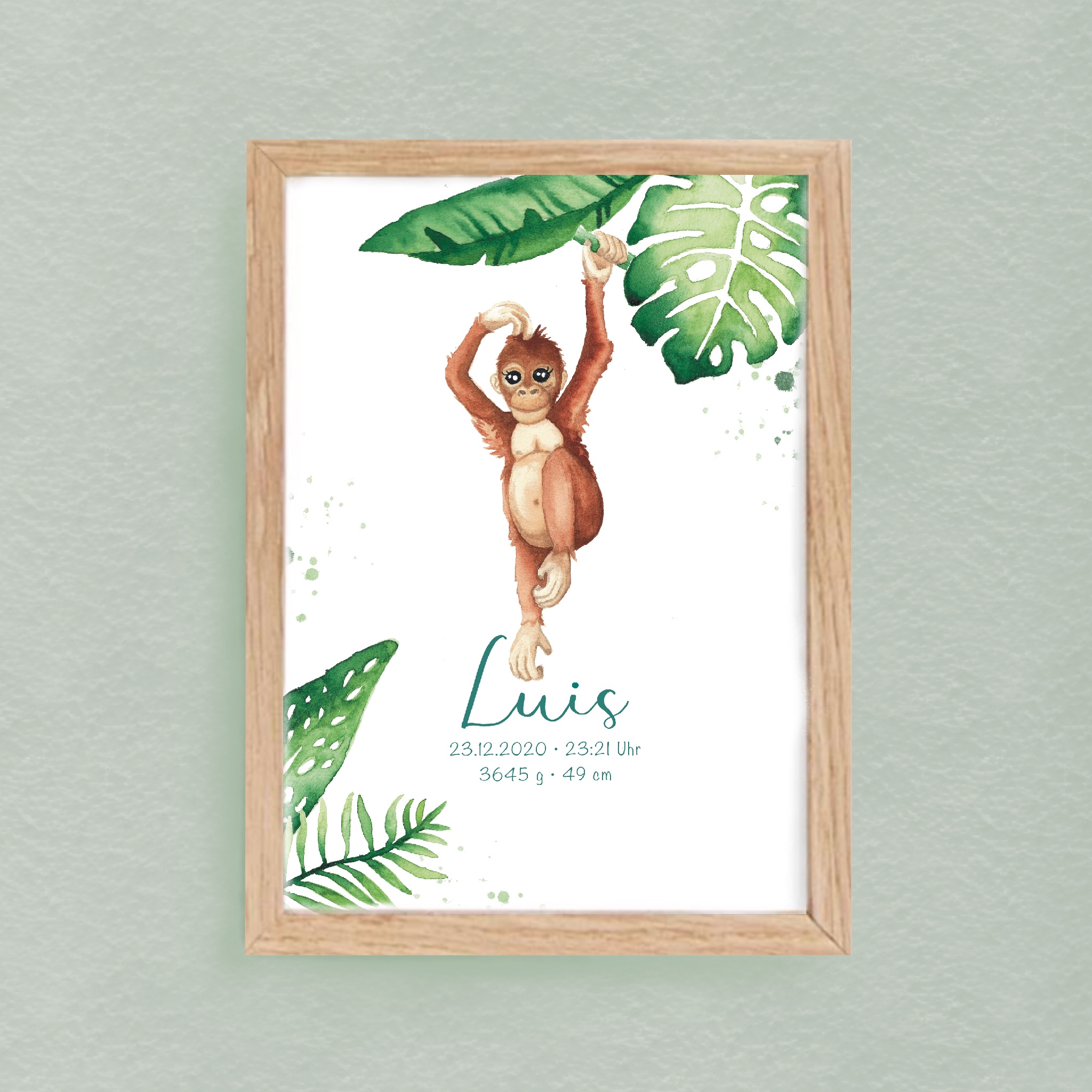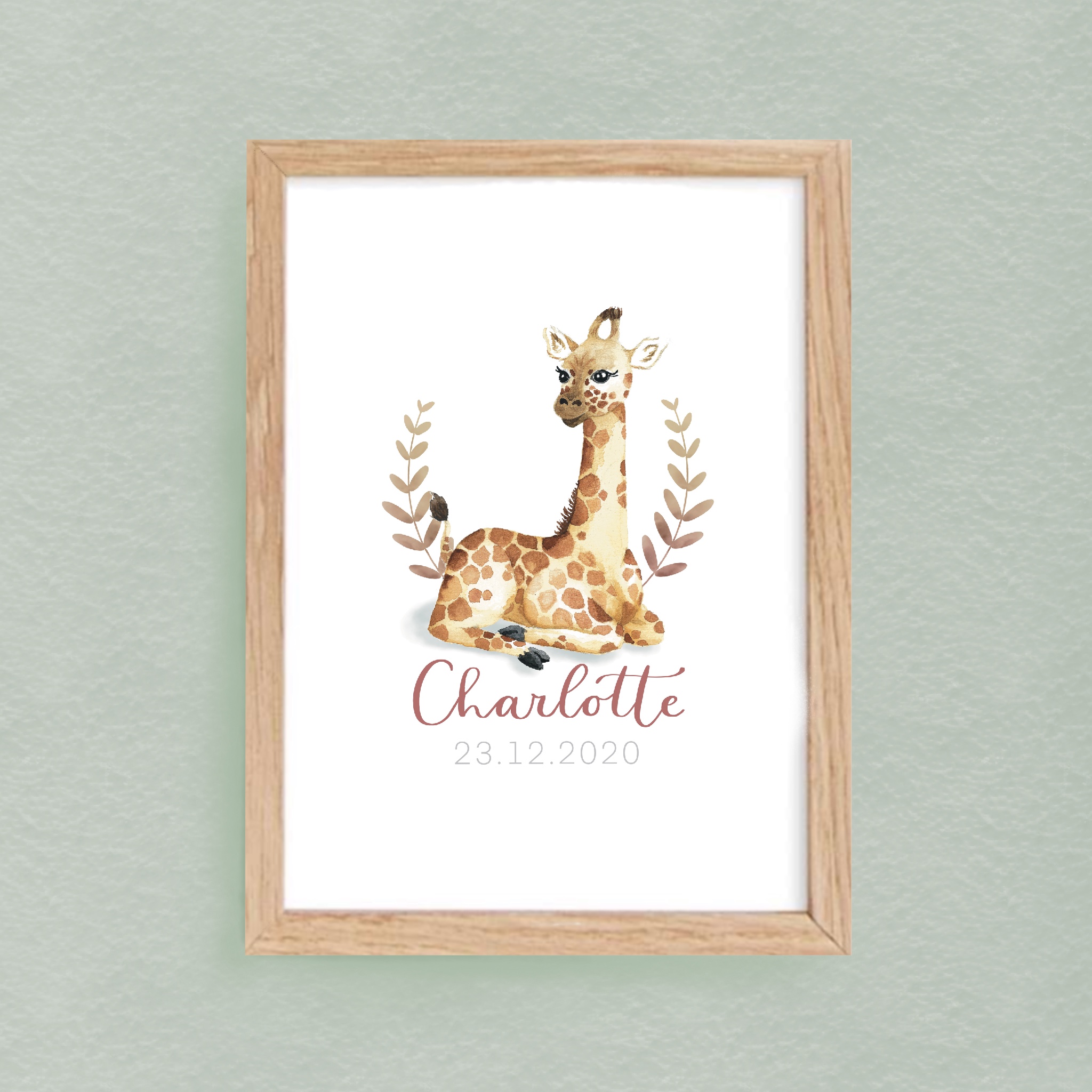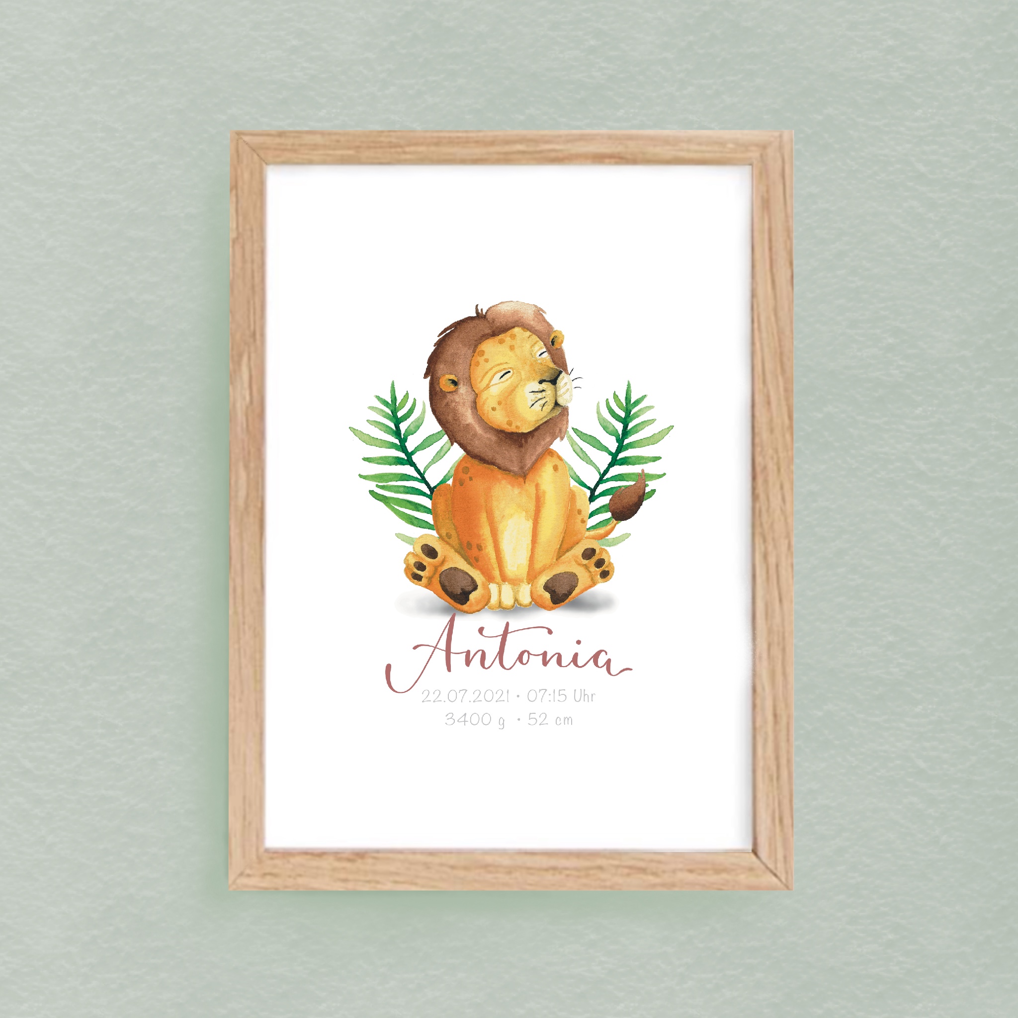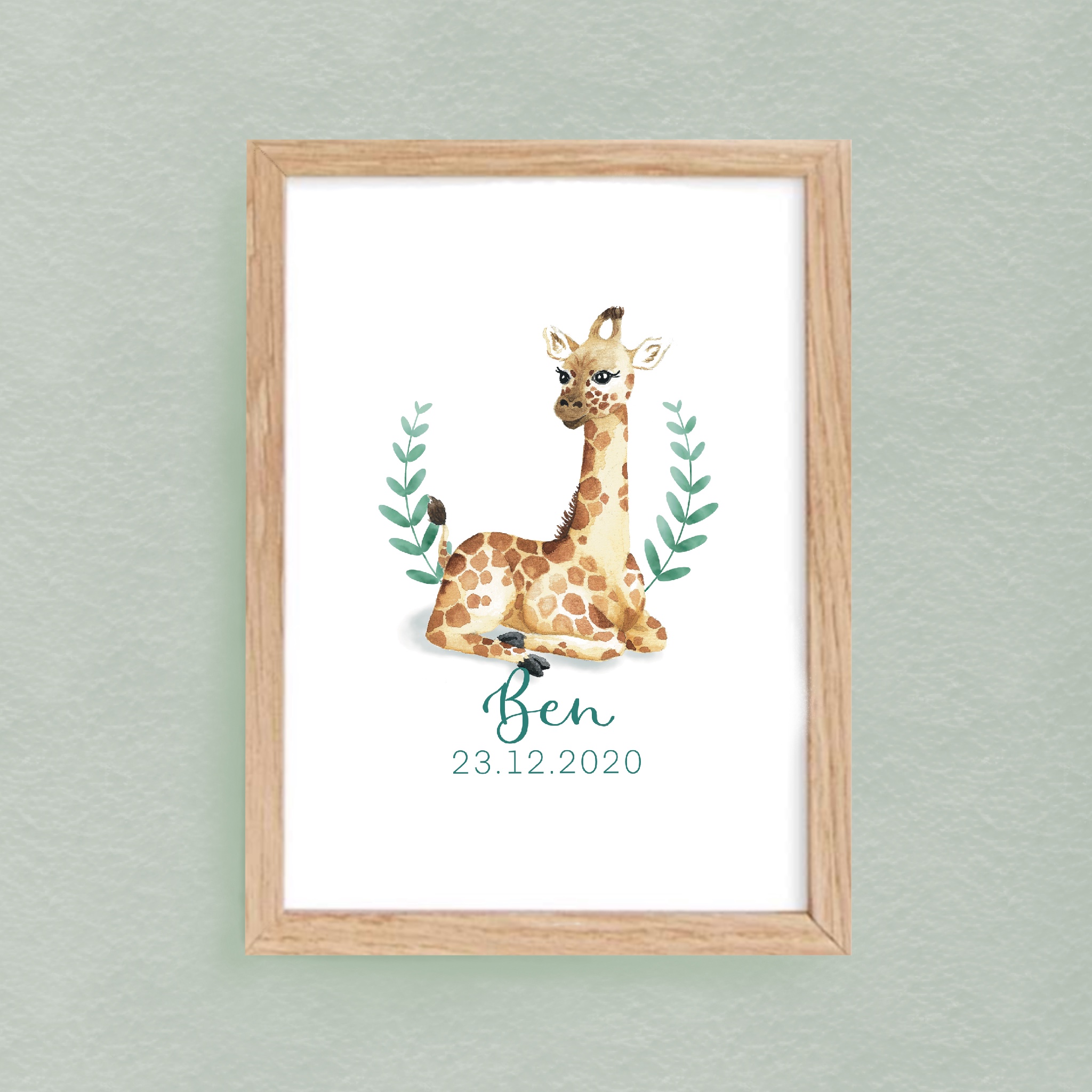 Hier findest du Namens- und Geburtsposter mit frechen und wilden Tieren.