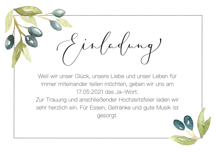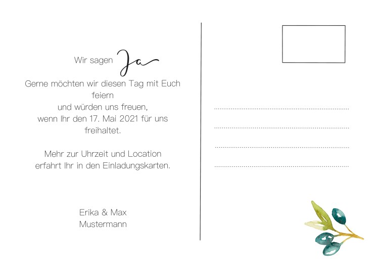 Die Einladungskarte ist um eine Antwortkarte erweiterbar