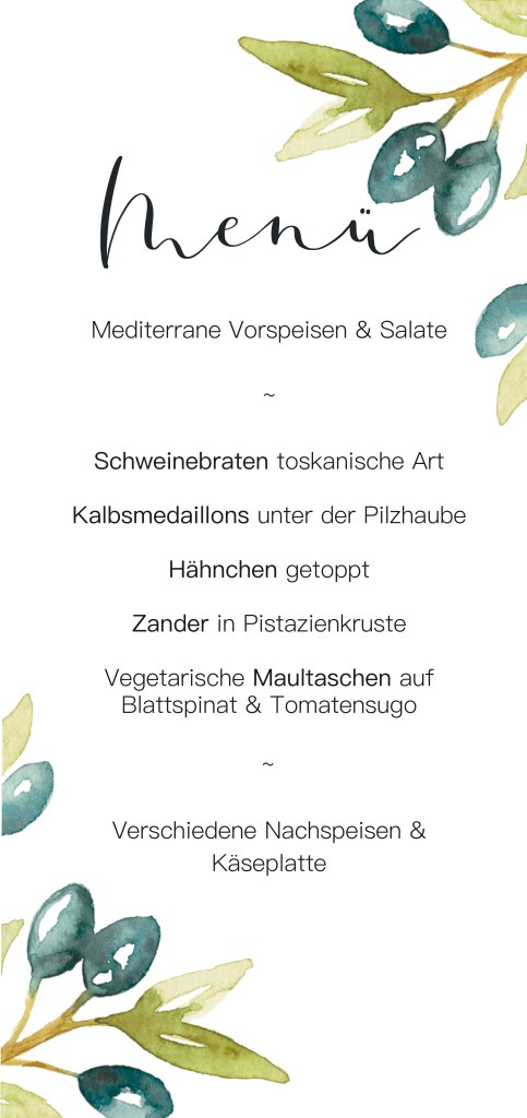 ~ Menükarten, Sitzplan oder Tischkarten ~