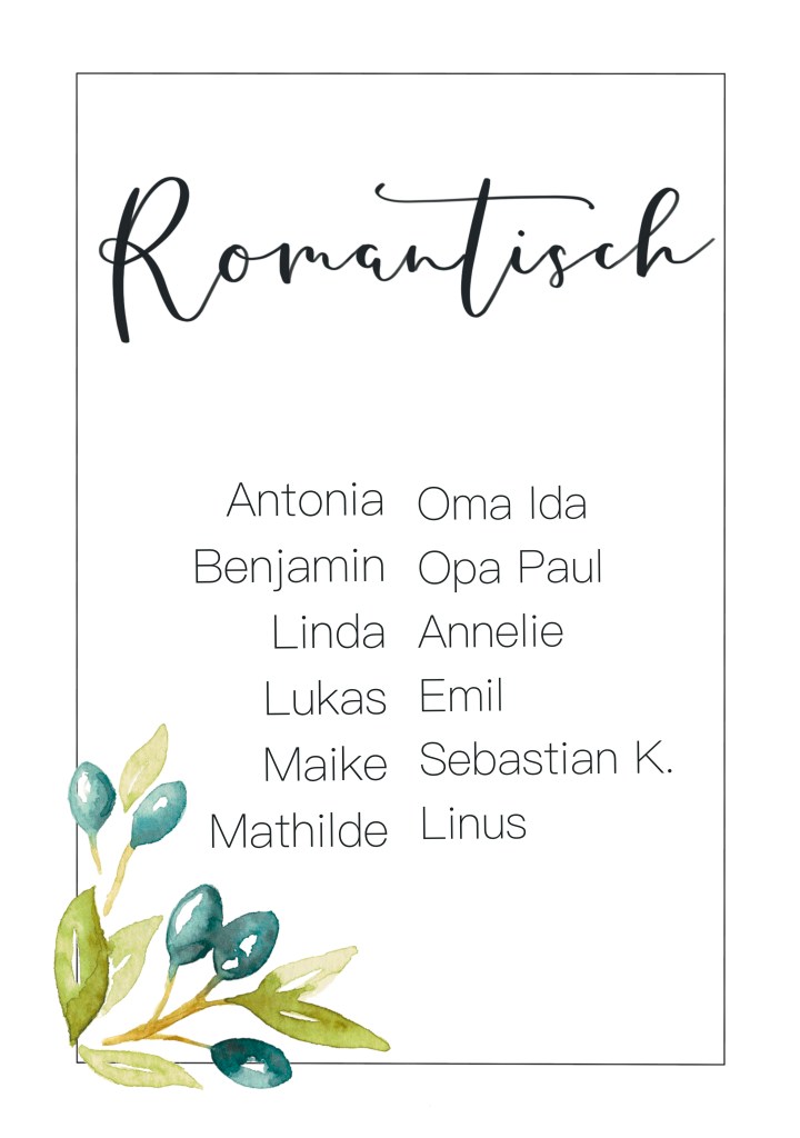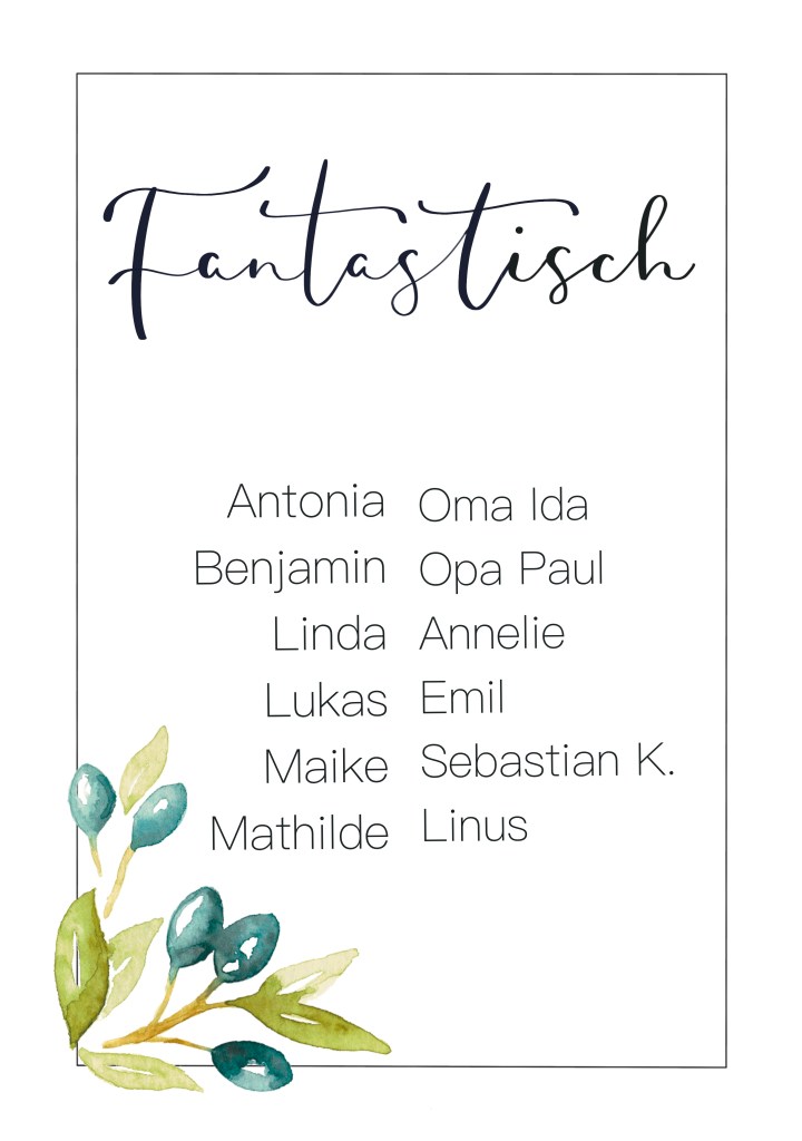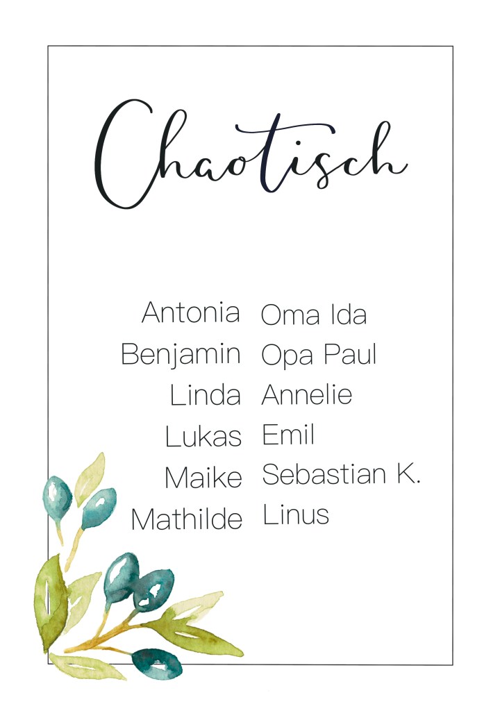 Verteilt die Karten direkt auf die Tische und eure Gäste können sich selbst aussuchen, neben wem sie sitzen wollen.