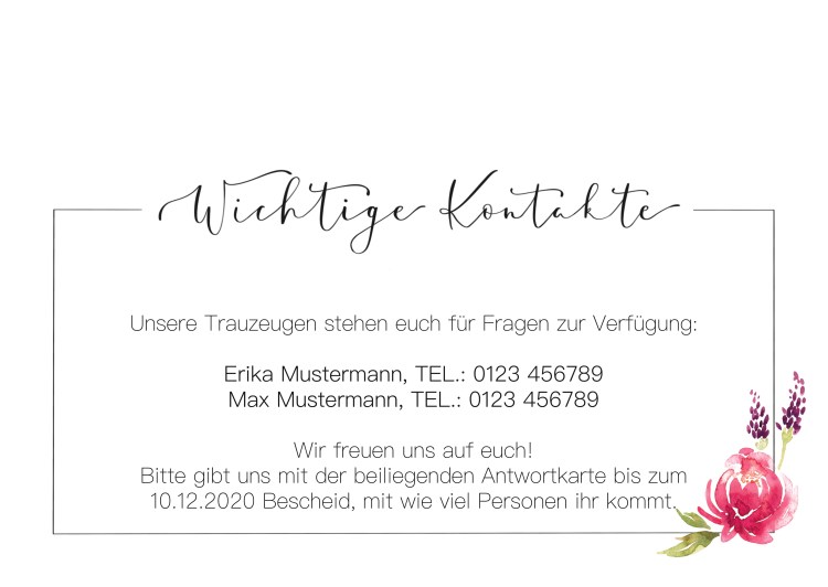 Die Einladungskarte ist um eine Antwortkarte erweiterbar