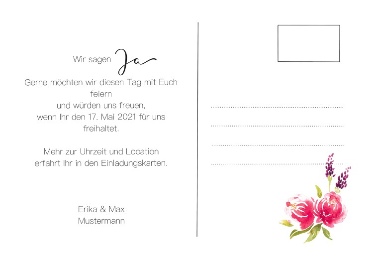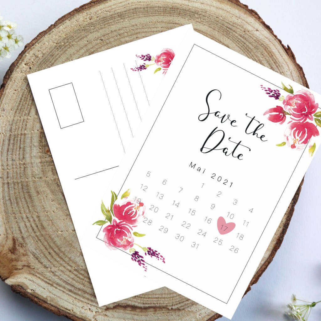 Mit dem rechtzeitigem Verschicken eurer Save the Date Karte (im praktischem Postkartenformat) stellt ihr sicher, dass sich möglichst viele eurer Hochzeitsgäste den Termin freihalten können.