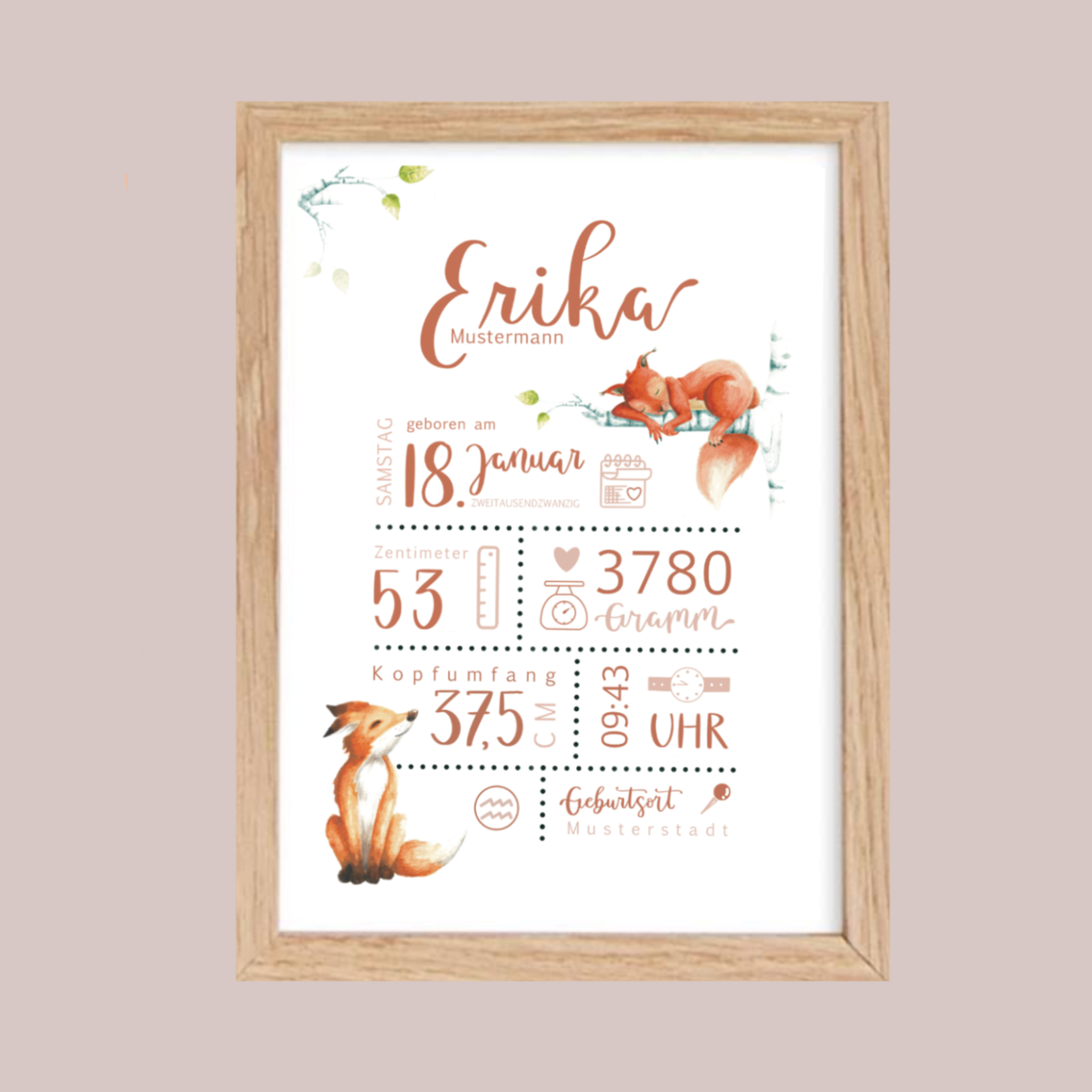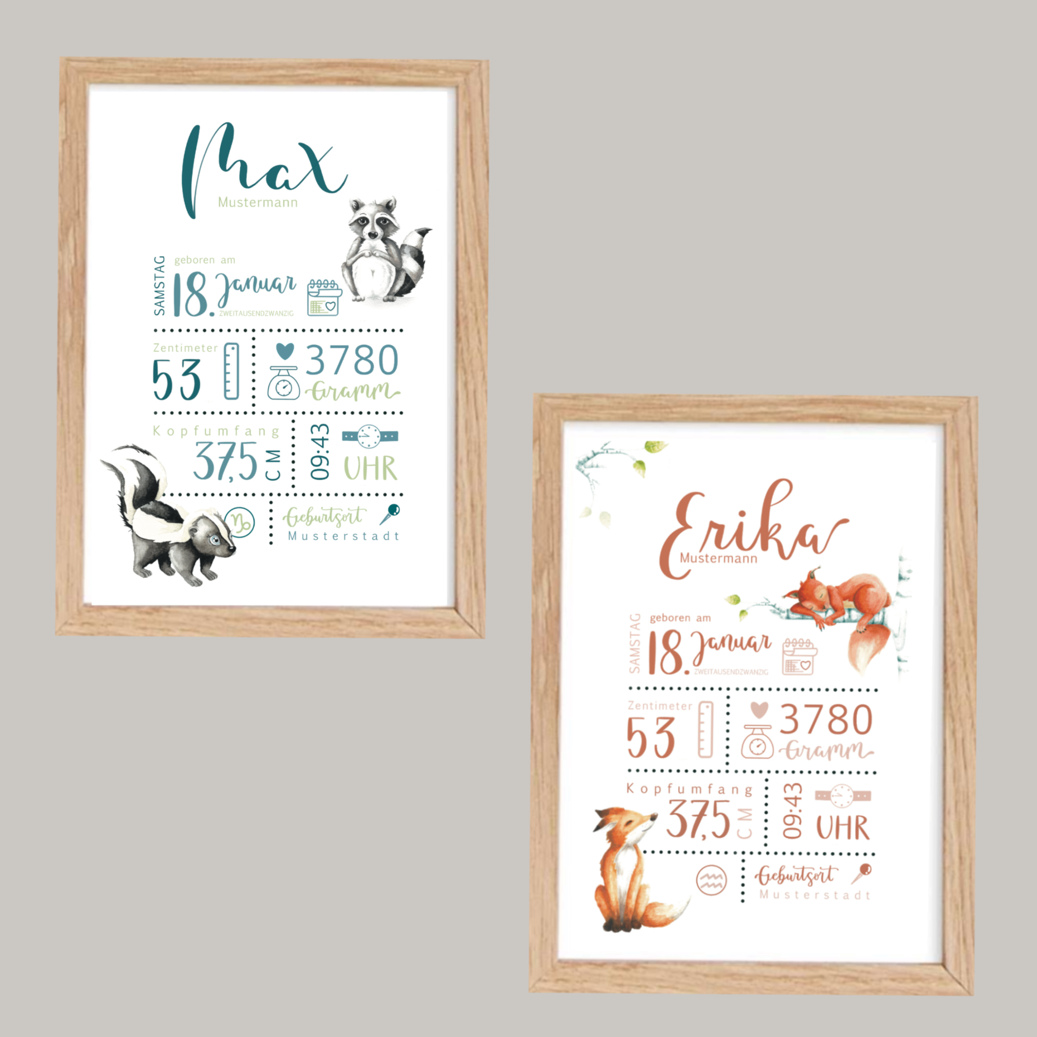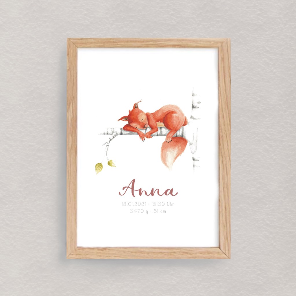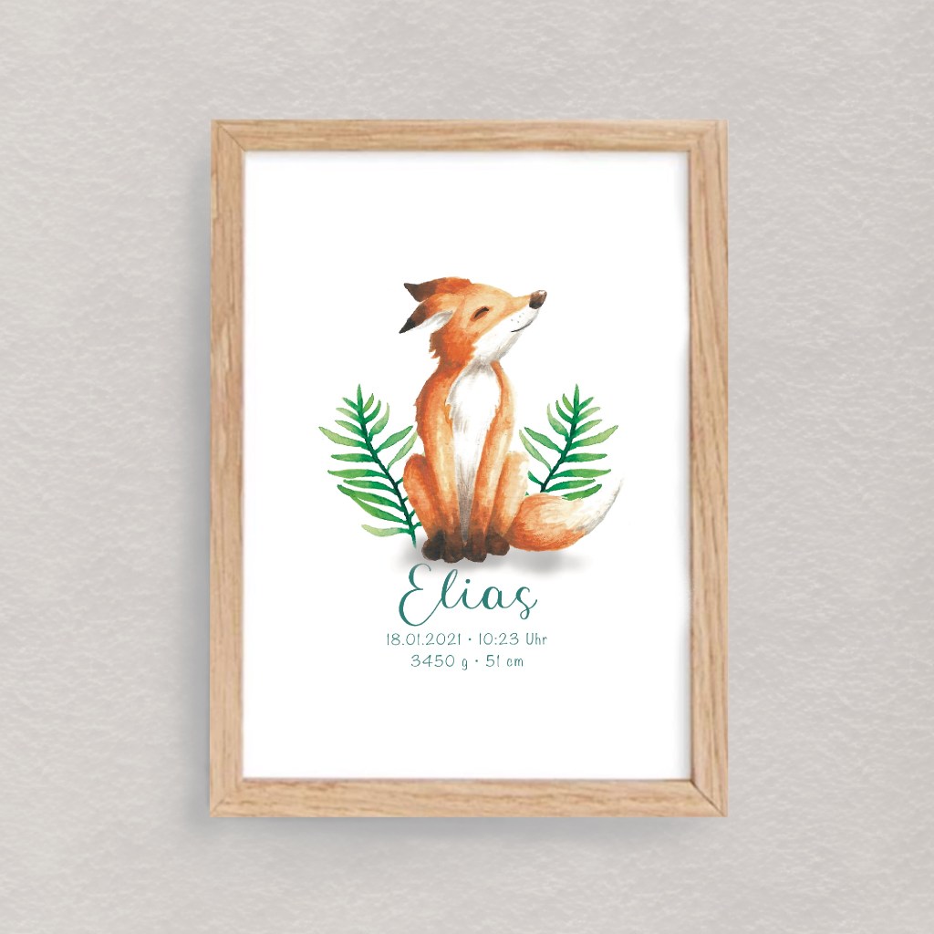 Hier findest du Namens- und Geburtsposter mit süßen Waldtiermotiven.